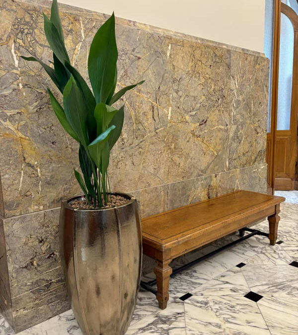 Pour ce projet, nous avons sélectionné des plantes d’intérieur robustes et décoratives, capables de s’épanouir dans un environnement professionnel tout en conservant une allure élégante.